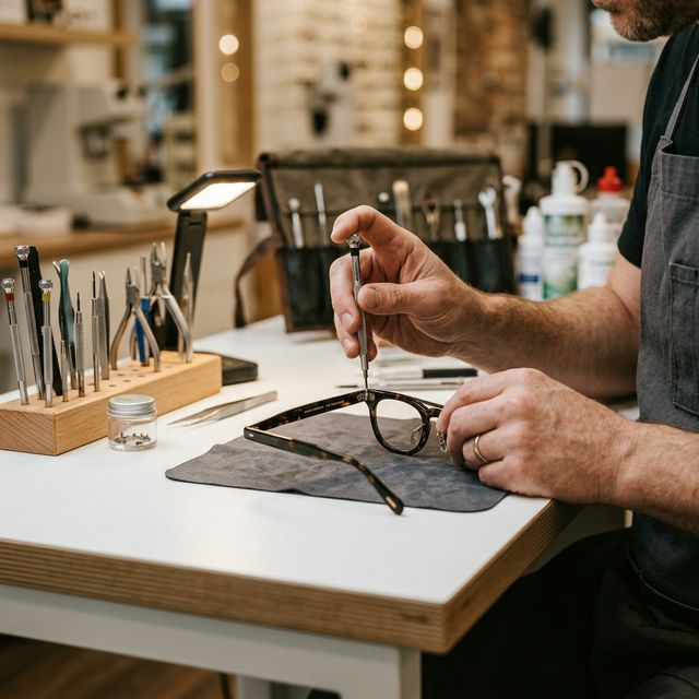 Сборка очков в собственной мастерской квалифицированным мастером.